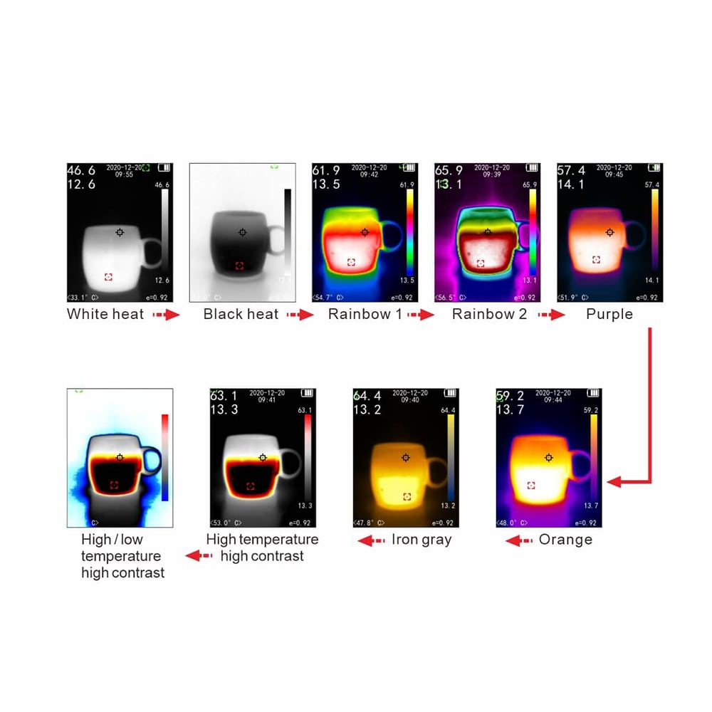 컬러 플레이트: 화이트 히트 / 블랙 히트 / 레인보우 1 / 레인보우 2 / 퍼플 / 오렌지 / 아이언 그레이 / 고온 고대비 / 고온 및 저온 고대비