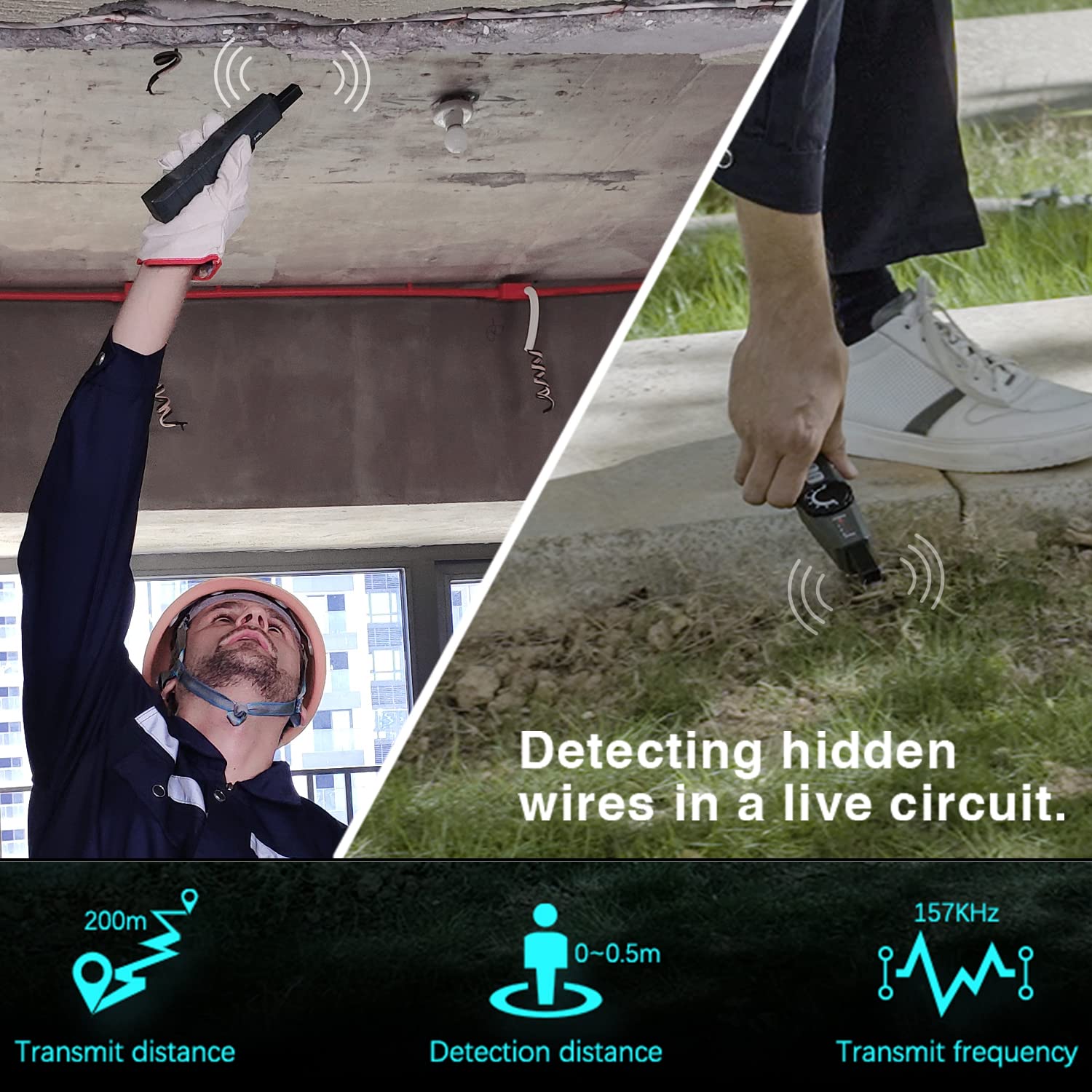 NF-825 combines essential tools for wiring and maintenance. Plugged into a power supply, the transmitter will give you a clear indication of where power cords are inside a wall and/or in which direction they run.