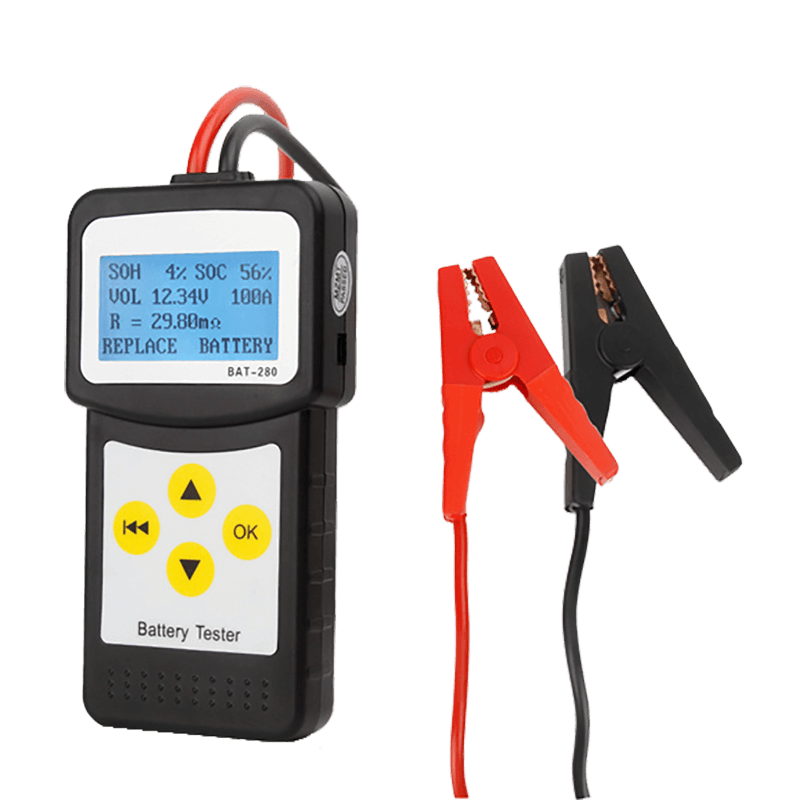 - Многофункциональный анализатор аккумуляторов — В анализаторах автомобильных аккумуляторов используется самый современный метод измерения электропроводности для обеспечения точных результатов. Одно нажатие клавиши проверяет напряжение, ток холодного пуска (CCA), сопротивление и общее состояние батареи.